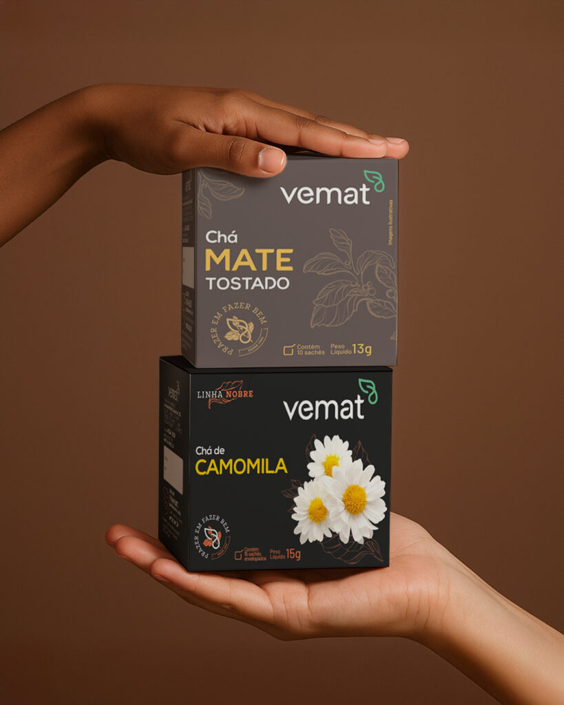 A Vemat é uma marca catarinense especializada em chás naturais. Criamos embalagens que transmitem bem-estar, sabor e conexão com a natureza.